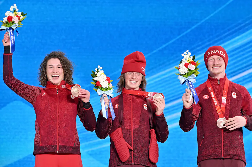Marion Thénault, Miha Fontaine et Lewis Irving, sur le podium aux Jeux de Pékin, en février dernier.