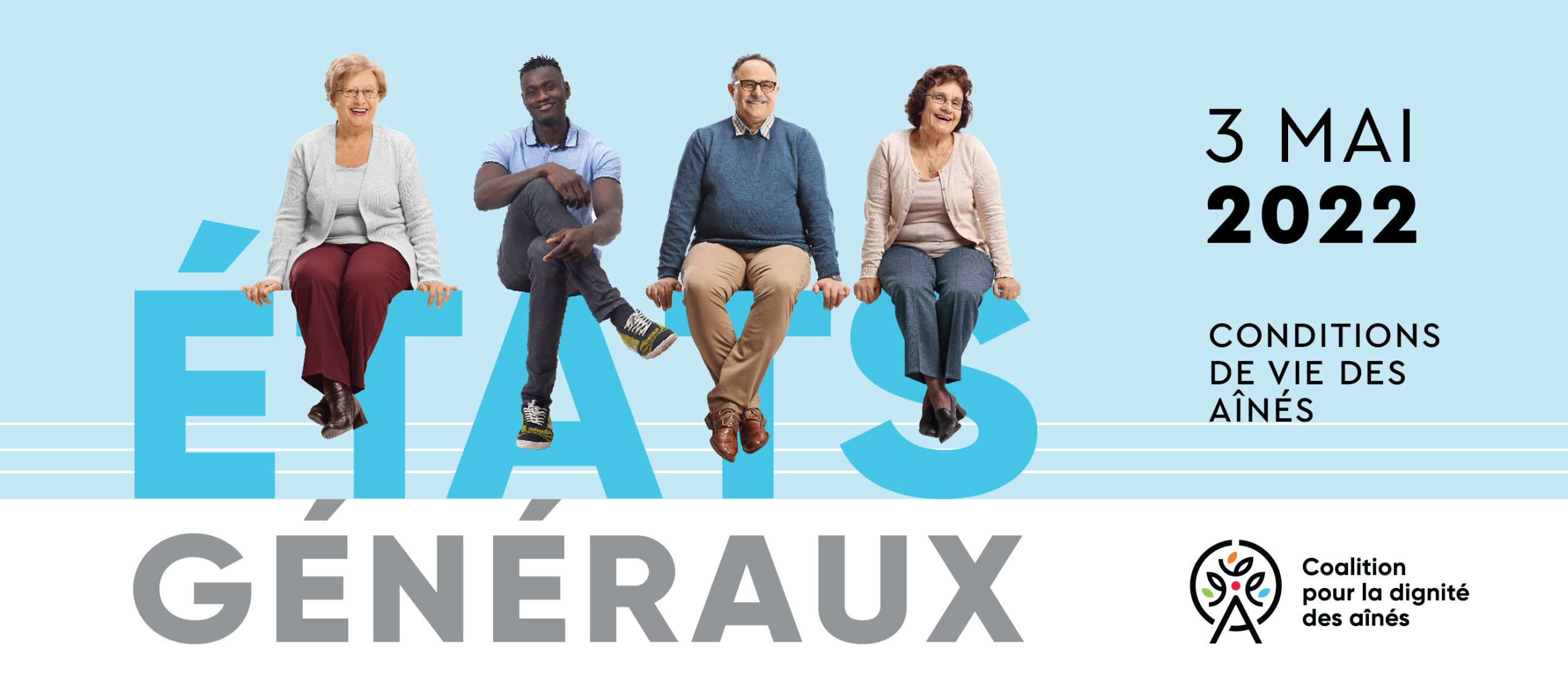 De concert avec les représentants de la société civile et les experts québécois, de sa propre initiative et dans l’urgence de devoir agir une fois pour toutes, la Coalition pour la dignité des aînés a organisé la tenue d’états généraux sur les conditions de vie des aînés, qui ont eu lieu le 3 mai 2022 à Québec. Cette démarche vise à établir les ponts qui mèneront à des actions concrètes et à é