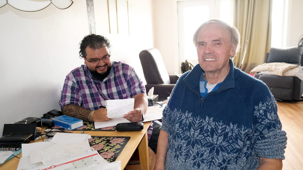 Le coordonnateur et navigateur du projet CommunAînés lui rend visite une fois par semaine. Ensemble, ils démêlent les rendez–vous médicaux à venir, notés sur des bouts de papier et ils organisent un transport adapté pour M. Wilson.